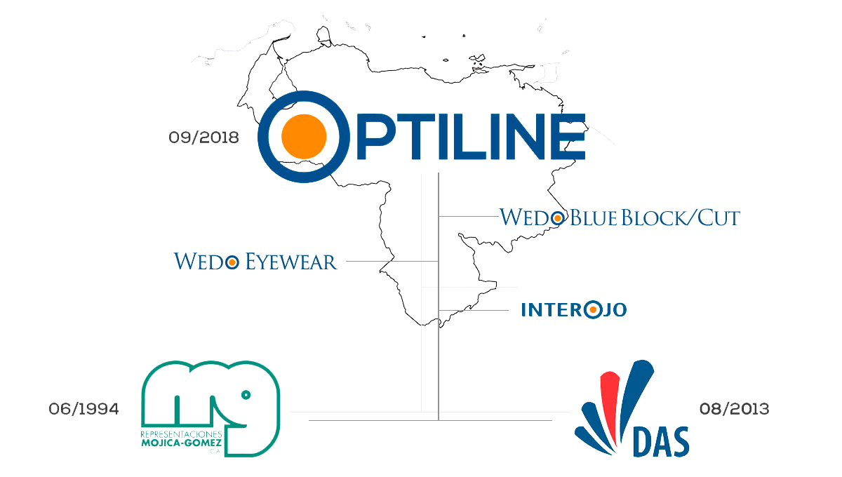Representaciones Mojica Gómez, C.A. empresa venezolana, creada en junio de 1.994, RIF J-30200326-1, dedicada a la importación, mercadeo y venta de productos, y DAS Soluciones Integrales, C.A, creada en 2.013 dedicada a procesos informáticos, creación y manejo de redes sociales, analizando la importancia de llegar al mercado con un producto de excelente calidad y precio en el tema de la visión, deciden crear Optiline.com.ve una plataforma digital para que a través de profesionales del ramo se atiendan sus pacientes de lentes de contacto, monturas y cristales Blue Block/Cut, con el respaldo de marcas reconocidas mundialmente, garantizando así la calidad de sus productos.